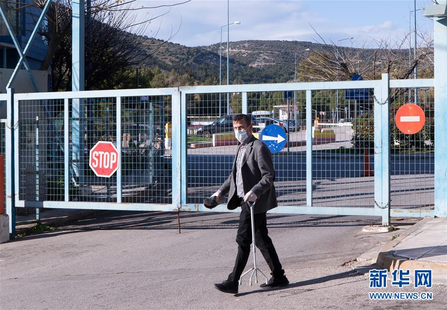2月28日,一名戴口罩的男子从希腊雅典西部的阿提肯大学总医院门口走过。该医院是希腊指定接诊新型冠状病毒疑似和确诊患者的医院之一。 希腊卫生部门28日宣布,在首都雅典再确诊一例新冠病毒肺炎患者,截至目前全国共有4人确诊。 新华社发(马里奥斯·罗洛斯摄)