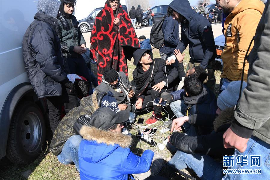 3月1日,在土耳其埃迪尔内省,难民和非法移民用免费提供的电源给手机充电。 土耳其总统埃尔多安2月29日说,土耳其已经不再阻止难民从土耳其进入欧洲。欧盟委员会主席冯德莱恩同日表示,欧盟注意到从土耳其涌向希腊、保加利亚等欧盟国家的难民潮激增,随时准备出动欧洲边境管理局人员阻止难民潮。 新华社记者 徐速绘 摄