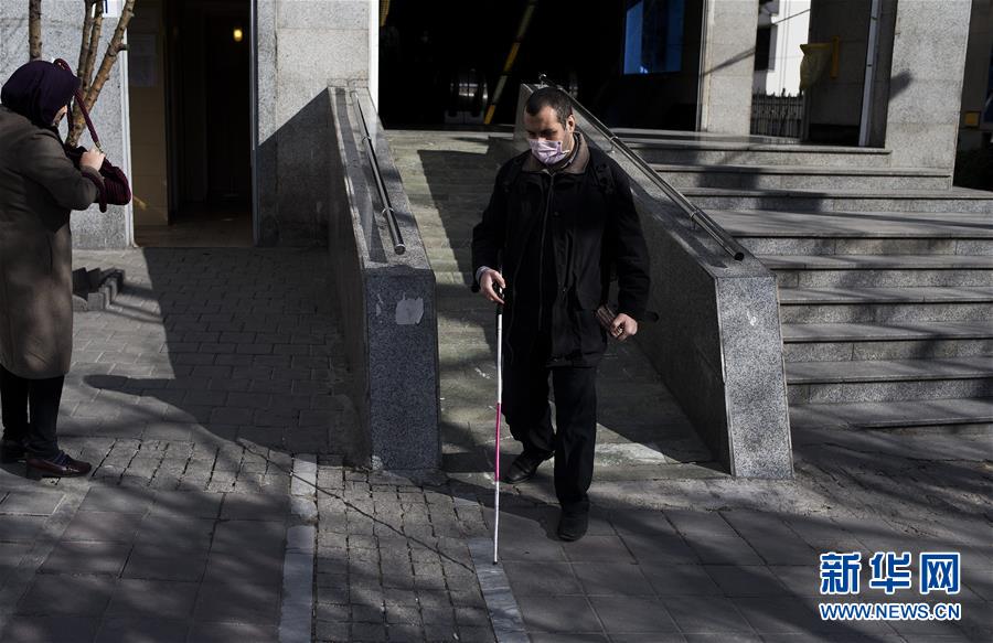 3月2日,在伊朗德黑兰,一位盲人戴着口罩出行。 伊朗卫生部门3月2日称,伊朗新冠病毒感染确诊病例上升至1501人。 新华社发(艾哈迈德·哈拉比萨斯 摄)