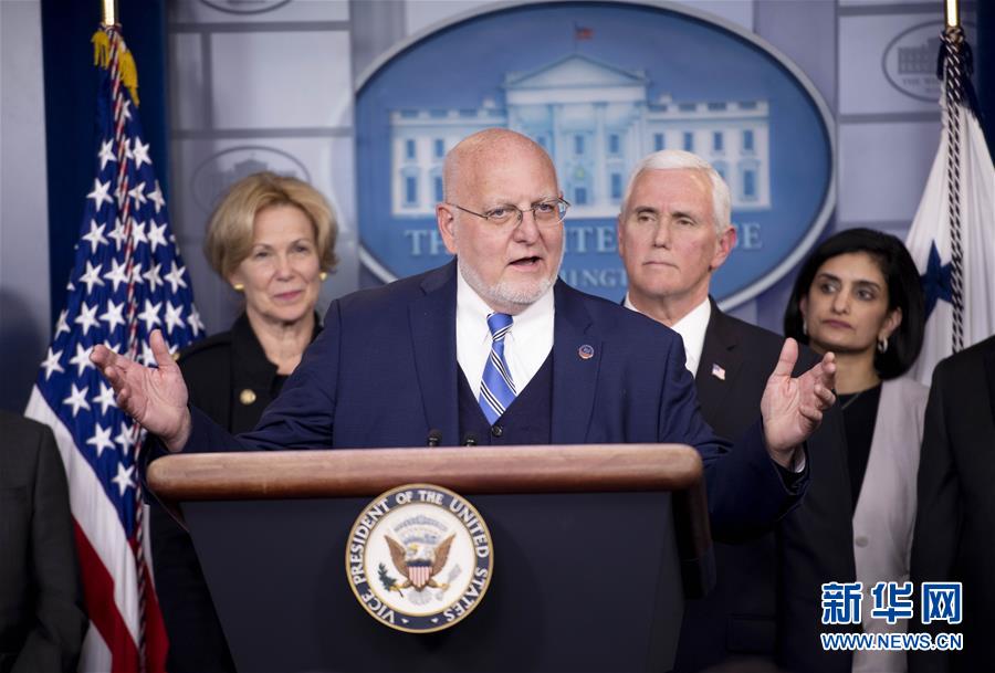 3月2日,在美国华盛顿白宫,美国疾病控制和预防中心主任雷德菲尔德出席记者会。 美疾控中心2日发布的数据显示,截至1日美国共有91例确诊或推定阳性病例,有2个死亡病例。 新华社记者 刘杰 摄