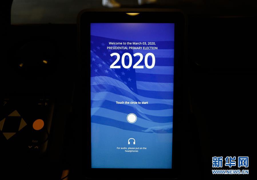这是3月3日在美国加利福尼亚州一个投票站内拍摄的投票操作页面。 美国总统选举预选3日迎来重要节点“超级星期二”。长期以来,美国部分州、海外领土选择在总统选举预选阶段前半程的某个星期二集体举行共和党和民主党的党内预选。这一天的预选活动跨地域广、选民数量大、多样性强,其结果对两党总统候选人提名影响重大,因此备受关注,被媒体冠名为“超级星期二”。 新华社记者 李颖 摄