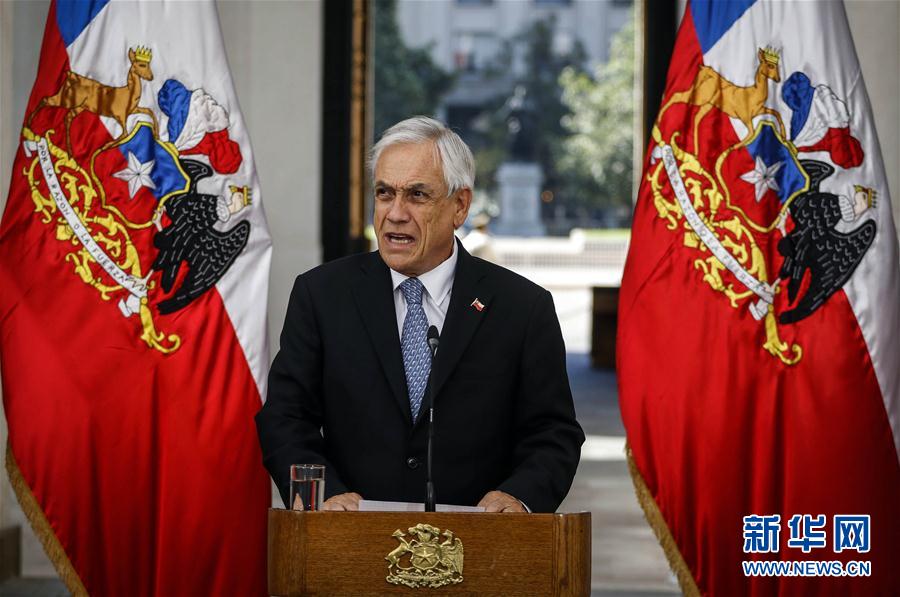 3月3日,在智利圣地亚哥,智利总统皮涅拉在总统府莫内达宫发表讲话,宣布境内确诊首例新冠病毒感染病例。 新华社/智利一号通讯社