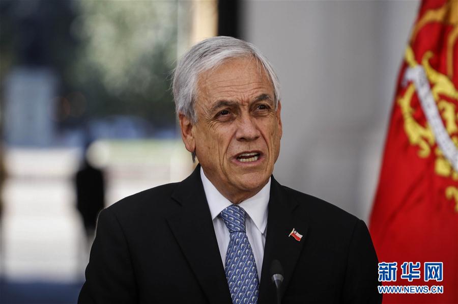3月3日,在智利圣地亚哥,智利总统皮涅拉在总统府莫内达宫发表讲话,宣布境内确诊首例新冠病毒感染病例。 新华社/智利一号通讯社