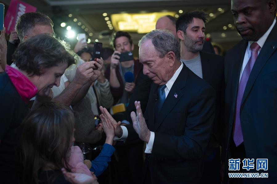 美国总统选举民主党竞选人布隆伯格(中)在美国弗吉尼亚州麦克莱恩出席竞选活动(2月29日摄)。 布隆伯格3月4日宣布退出竞选角逐,转而支持美国前副总统拜登获得民主党党内提名。 新华社记者 刘杰 摄
