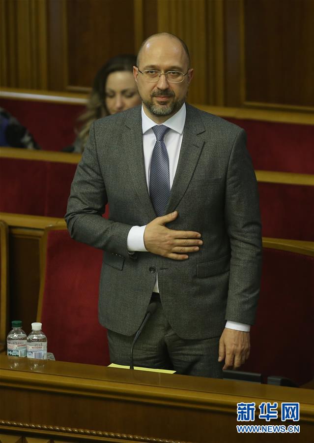 3月4日,在乌克兰首都基辅,杰尼斯·什米加尔在议会批准其出任新总理后起立致意。 乌克兰最高拉达(议会)4日投票通过总理贡恰鲁克的辞职申请,并批准杰尼斯·什米加尔出任新总理。乌克兰新内阁当天也获得最高拉达批准。 新华社发(谢尔盖·斯塔拉斯坚科摄)