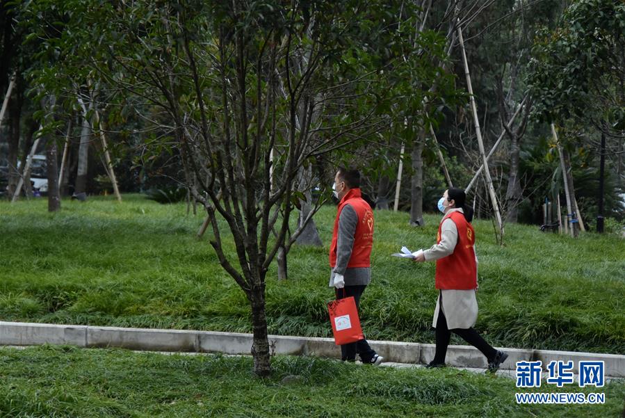 3月6日,哈米(左)和鸡鸣山社区党委书记何文君在鸡鸣山社区巡查。 新华社记者 郑梦雨 摄