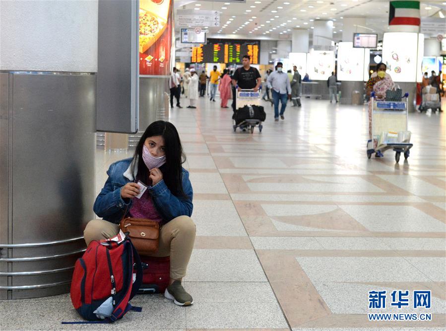 3月7日,在科威特国际机场,一名滞留旅客佩戴口罩坐在机场内。 科威特政府7日宣布与7个国家的航班往来暂停一周,以阻止新冠病毒传播。这7个国家包括孟加拉国、菲律宾、印度、斯里兰卡、叙利亚、黎巴嫩和埃及。 新华社发(阿萨德 摄)