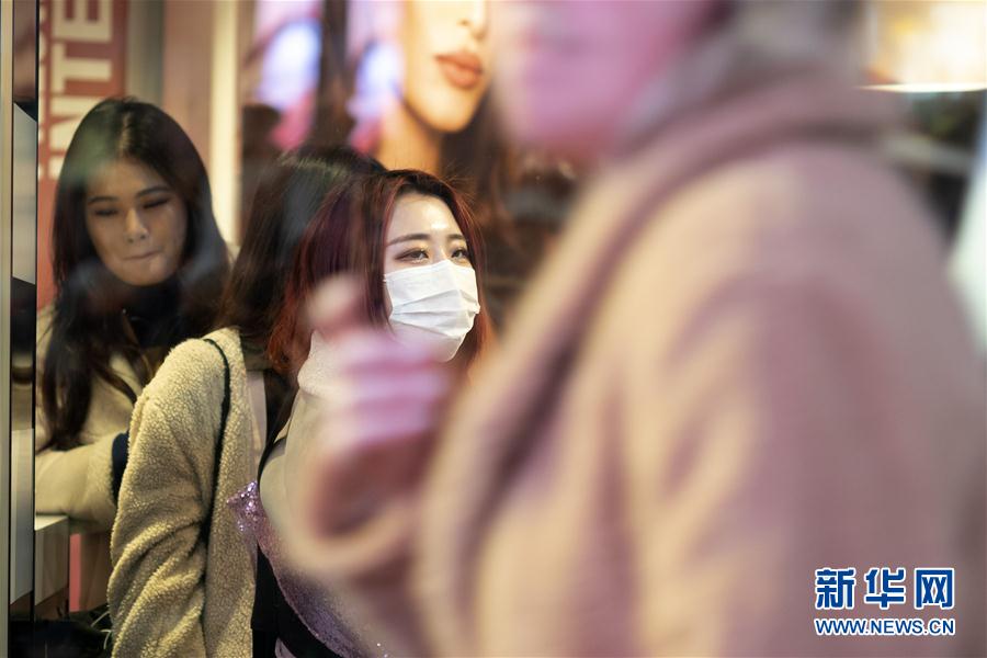 这是3月7日在美国纽约曼哈顿时报广场拍摄的戴口罩的行人。 新华社记者 李木子 摄