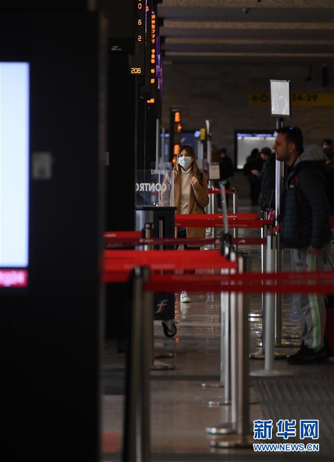3月9日,在意大利罗马泰尔米尼火车站,一名女子戴着口罩出行。 意大利总理孔特9日晚发表电视讲话说,为避免新冠肺炎疫情进一步扩散,自10日起在全国范围内实施封城。除可证明的工作、健康和紧急需求三种特殊原因,全国范围内的民众不得擅自离开所在地。 新华社发(阿尔贝托·林格利亚摄)