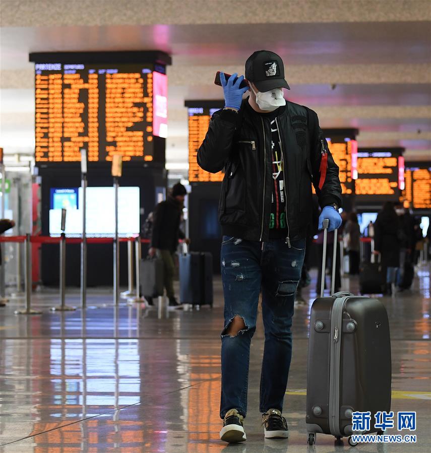 3月9日,在意大利罗马泰尔米尼火车站,一名男子戴着口罩出行。 意大利总理孔特9日晚发表电视讲话说,为避免新冠肺炎疫情进一步扩散,自10日起在全国范围内实施封城。除可证明的工作、健康和紧急需求三种特殊原因,全国范围内的民众不得擅自离开所在地。 新华社发(阿尔贝托·林格利亚摄)