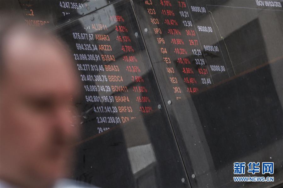3月9日 ,在巴西圣保罗,一名男子经过证券交易所。新华社发(拉赫尔·帕特拉索摄)