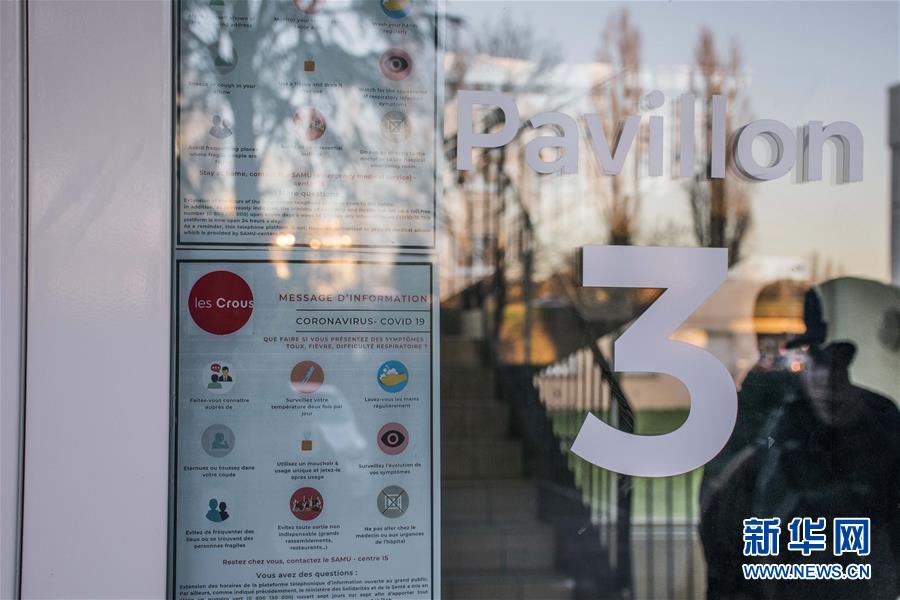 3月9日,在法国东北部城市梅斯,一所大学内张贴着出现疑似新冠病毒感染症状后的应对方法。 法国卫生部官员9日说,法国当天新增新冠肺炎确诊病例286例,全国确诊病例升至1412例。 新华社发(马丁·勒列夫尔摄)