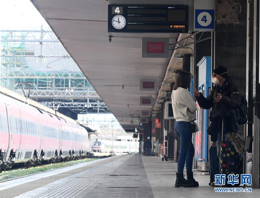 3月9日,在意大利罗马泰尔米尼火车站,人们戴着口罩出行。 意大利民事保护部门负责人、新冠病毒应急委员会专员博雷利9日说,截至当地时间当天18时,意大利累计新冠肺炎确诊病例增至9172例。 新华社发(阿尔贝托·林格利亚摄)