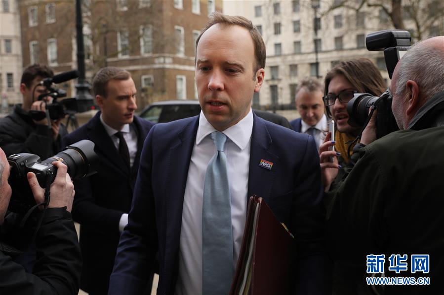 3月9日,在英国伦敦,英国卫生大臣马修·汉考克准备参加内阁紧急安全会议。新华社发(蒂姆·爱尔兰摄)