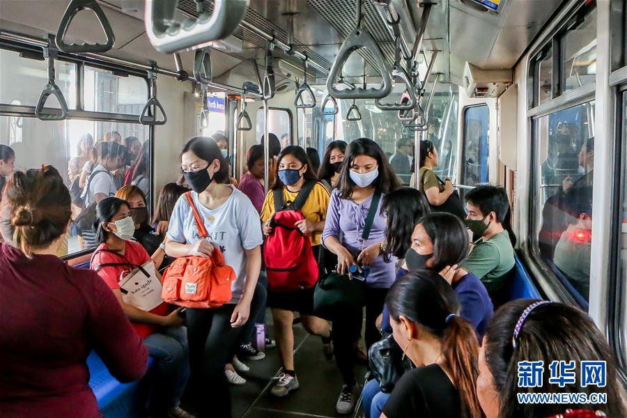 3月10日,在菲律宾奎松城,人们佩戴口罩乘坐地铁。 菲律宾总统杜特尔特9日晚表示,菲律宾当天新增4例新冠肺炎确诊病例,目前累计确诊病例24例。 新华社发(乌马利摄)