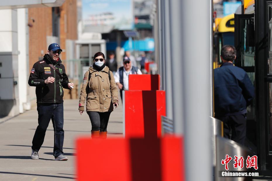 当地时间3月9日,一位民众戴口罩在纽约曼哈顿换乘公交。据报道,当日,美国新冠肺炎病例数累计超过600。中新社记者 廖攀 摄
