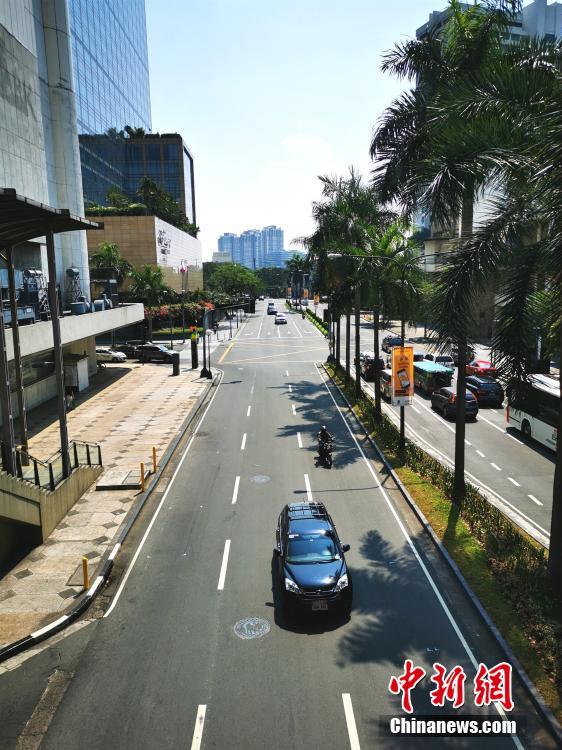 3月10日,平时车水马龙的马尼拉CBD马卡蒂街头,车辆稀少。因应新冠肺炎疫情在菲出现本地传播迹象,菲律宾总统杜特尔特9日宣布全菲进入公共卫生紧急状态。中新社记者 关向东 摄