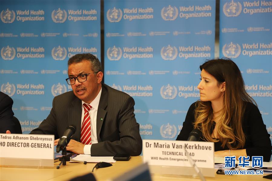 3月11日,在瑞士日内瓦,世界卫生组织总干事谭德塞(左)在例行记者会上发言。 当日,世界卫生组织总干事谭德塞说,新冠肺炎疫情从特征上可称为大流行。 新华社记者陈俊侠摄