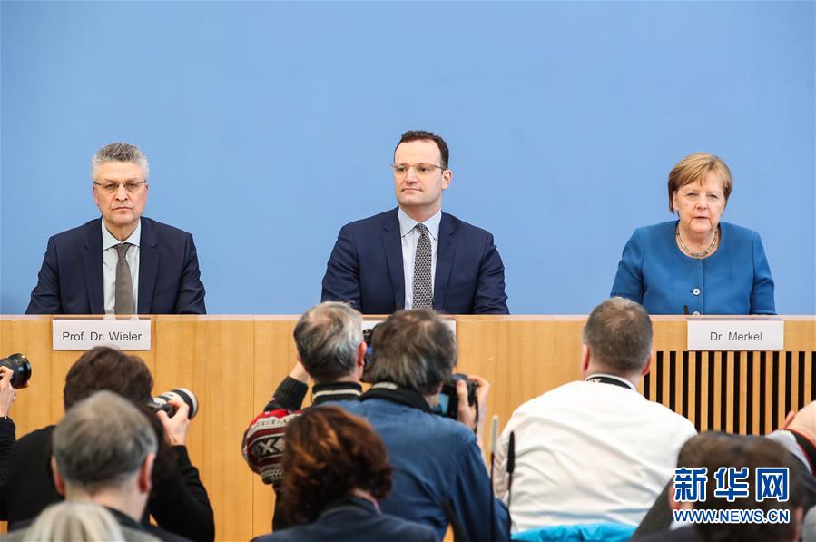 3月11日,在德国首都柏林,德国总理默克尔(右)、德国卫生部长施潘(中)与德国疾控机构罗伯特·科赫研究所所长洛塔尔·威勒出席新闻发布会。 德国总理默克尔11日说,控制新冠肺炎疫情是当前首要任务,全国应团结一致,经受住疫情的考验。 新华社记者 单宇琦 摄