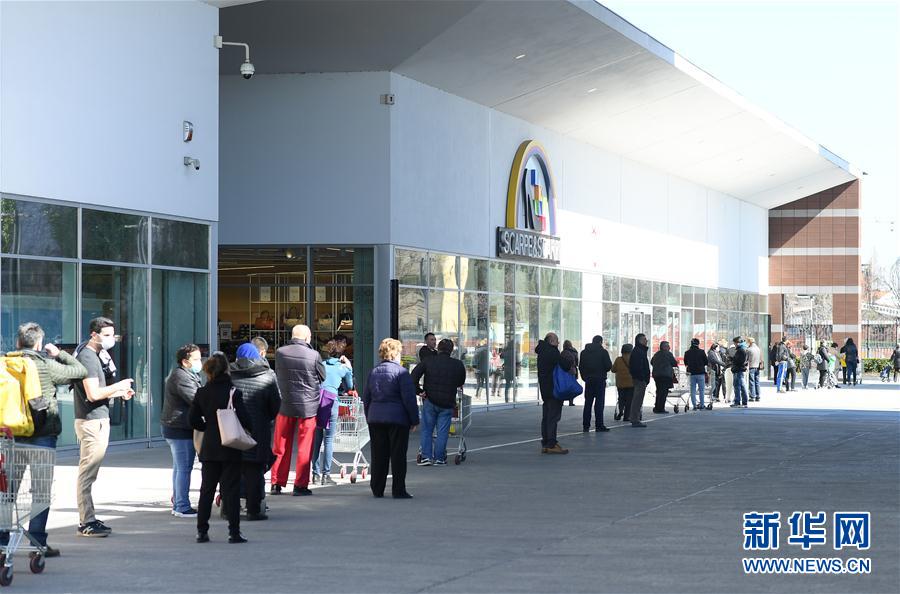 3月11日,在意大利米兰,人们因超市内限流措施在外排队等候。 意大利民事保护部门负责人、新冠病毒应急委员会专员博雷利11日说,截至当地时间当天18时,意大利累计新冠肺炎确诊病例12462例。 新华社发(达尼埃莱·马斯科洛摄)