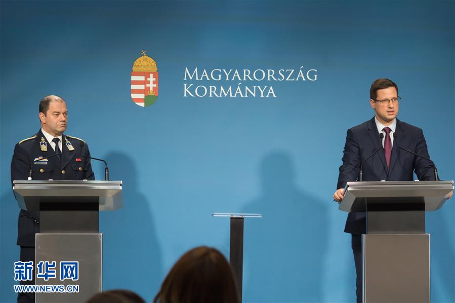 3月11日,在匈牙利布达佩斯,匈牙利总理府部长古亚什·盖尔盖伊(右)在新闻发布会上讲话。新华社发(弗尔季·奥蒂洛摄)