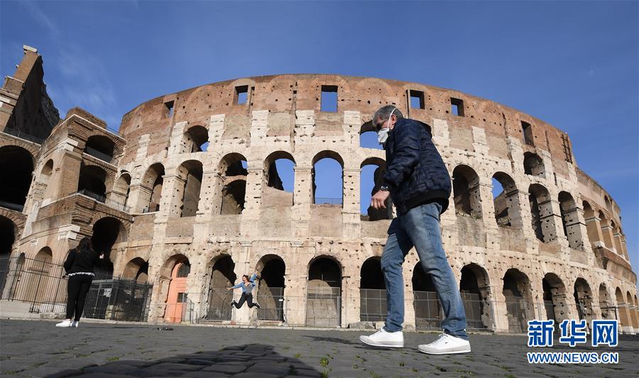 3月10日,在意大利首都罗马,一名戴口罩的男子从斗兽场旁走过。意大利10日起进入全国“封城”状态。截至当地时间11日18时,意大利累计新冠肺炎确诊病例12462例,累计死亡病例827例。 新华社发(阿尔贝托·林格利亚摄)