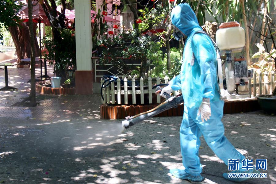 3月12日,在越南中部平顺省,工作人员开展消毒工作。 越南卫生部12日晚宣布,越南当天比前一天新增6例新冠肺炎确诊病例,全国累计确诊病例增至44例。 新华社/越通社