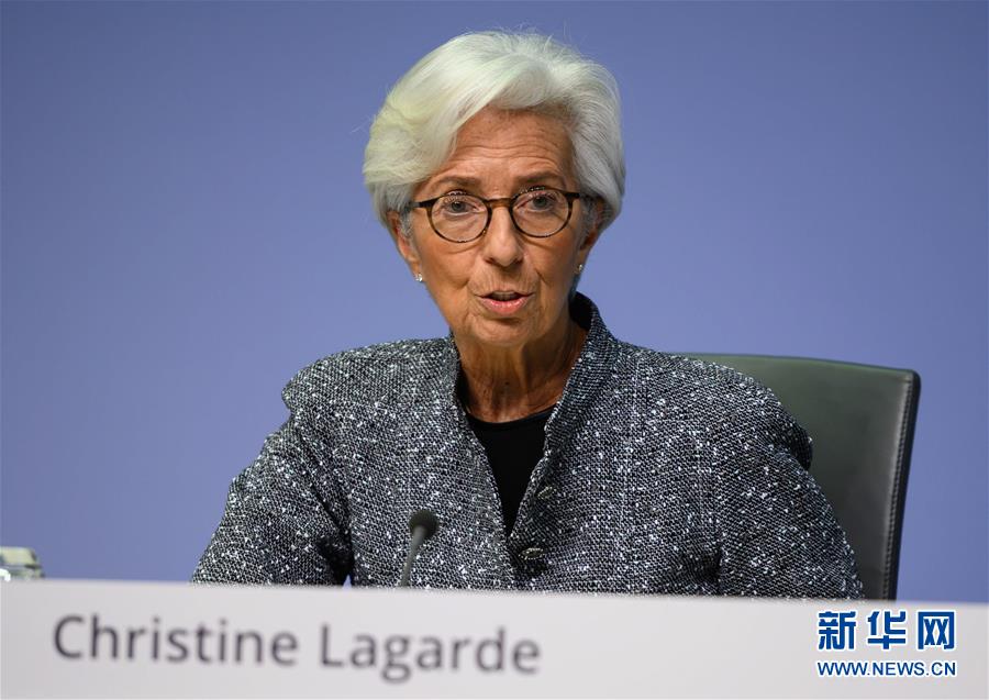 3月12日,在德国法兰克福的欧洲中央银行总部,欧洲央行行长拉加德在新闻发布会上介绍情况。 当日,欧洲中央银行召开货币政策会议,决定维持欧元区主导利率不变,同时采取一揽子措施应对新冠肺炎疫情影响。 新华社发(欧洲中央银行供图)