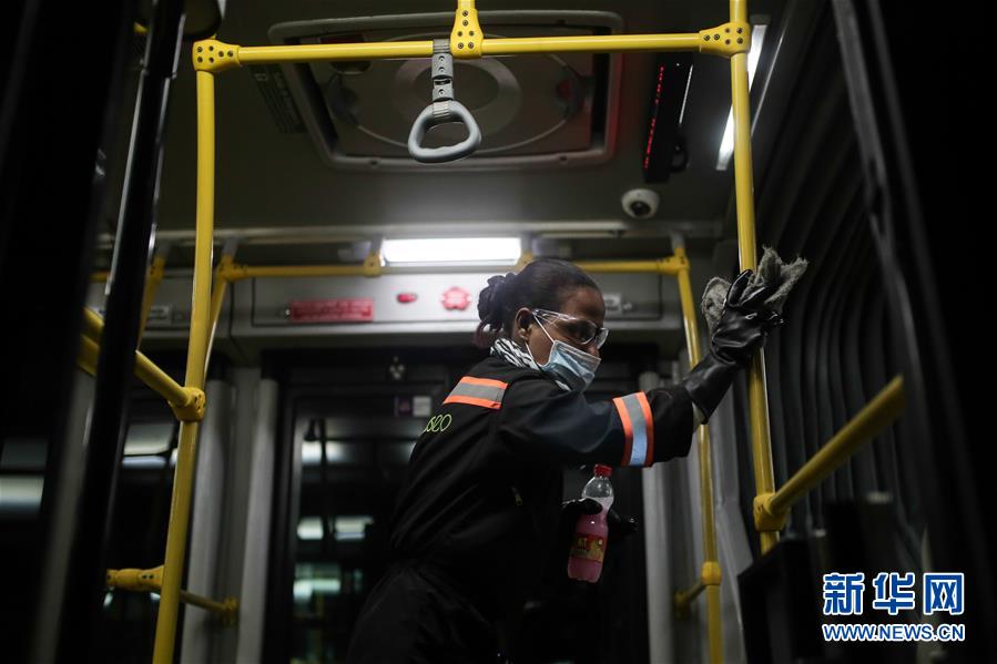 3月12日凌晨,在位于哥伦比亚首都波哥大南部玻利瓦尔城区的一处快速公交系统停车场,工作人员清洁车辆,为车厢消毒。 当日,哥伦比亚总统杜克宣布,考虑到哥伦比亚已有新冠肺炎确诊病例以及世界卫生组织宣布新冠肺炎疫情已具有大流行特征,哥全国自12日起进入卫生紧急状态。截至12日上午,哥伦比亚累计报告9例新冠肺炎确诊病例。 新华社发(约翰·帕斯摄)