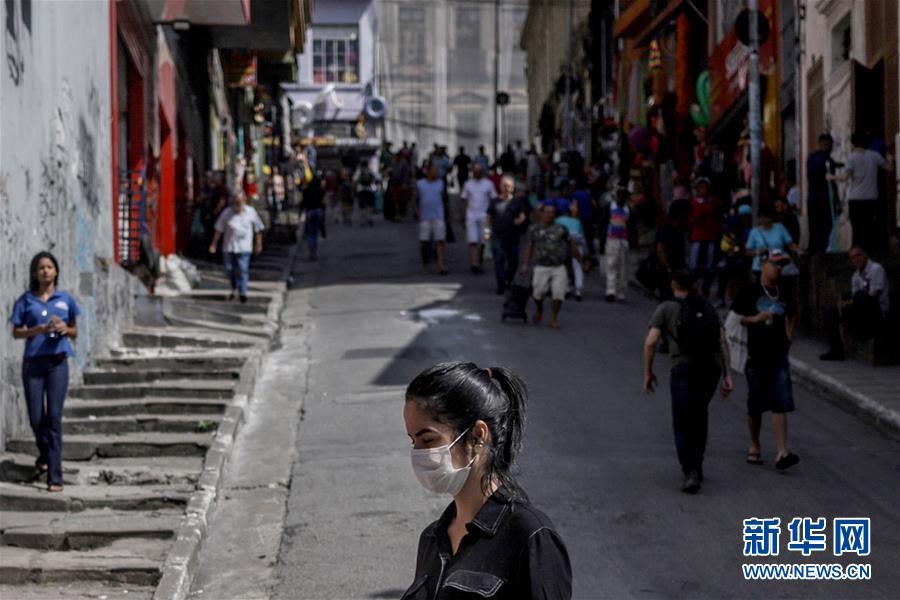 3月12日,在巴西圣保罗,一名女子戴口罩出行。 巴西卫生部12日宣布,该国新增新冠肺炎确诊病例25例,累计确诊病例77例。一名随巴西总统访美的官员当天确诊感染新冠病毒。 新华社发(拉赫勒 摄)