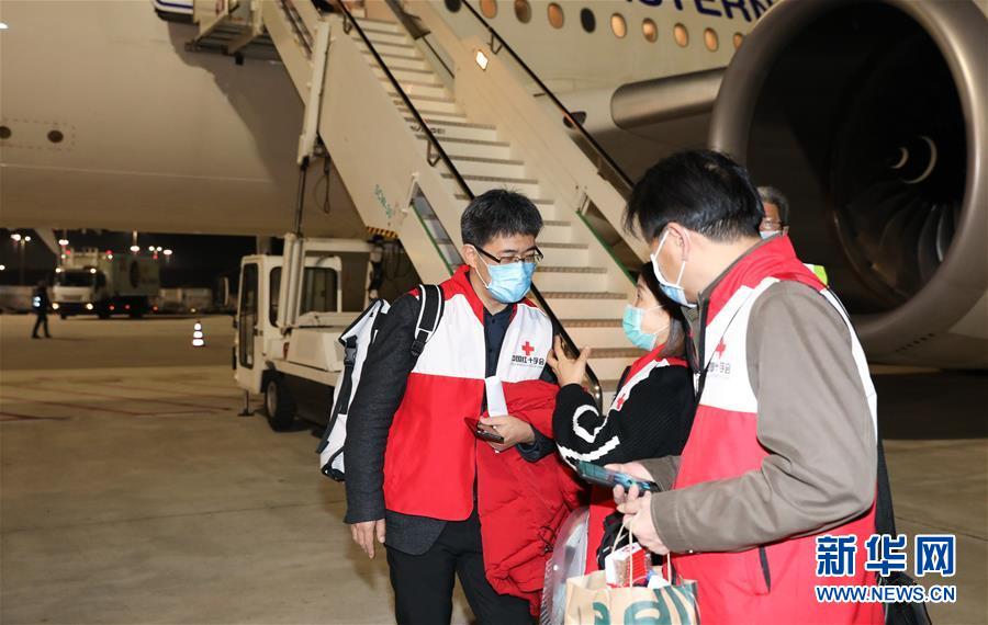 当地时间12日晚,由国家卫生健康委员会和中国红十字会共同组建的抗疫医疗专家组一行9人抵达意大利首都罗马,并带来部分中方捐助的医疗物资。 新华社记者 程婷婷 摄