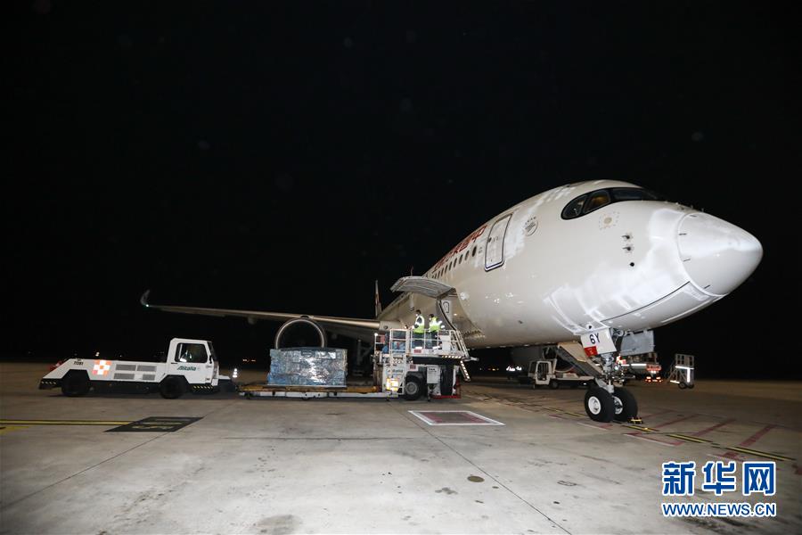 当地时间12日晚,由国家卫生健康委员会和中国红十字会共同组建的抗疫医疗专家组一行9人抵达意大利首都罗马,并带来部分中方捐助的医疗物资。 新华社记者 程婷婷 摄