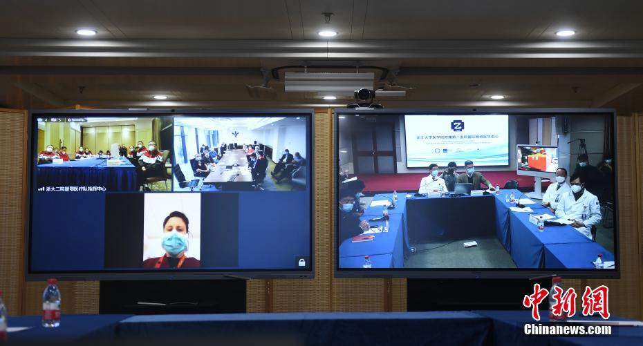 3月13日,杭州、武汉、爱尔兰多位医生远程连线。当日,浙江大学医学院附属第二医院、武汉协和肿瘤中心ICU医生与爱尔兰科克市等地医生视频连线,向爱尔兰介绍中国抗击新冠肺炎疫情的措施和经验。并就预防社区传播、居家隔离政策、预防输入病例以及控制和切断传播途径、医疗资源统筹管理安排等方面进行分享。 中新社记者 王刚 摄