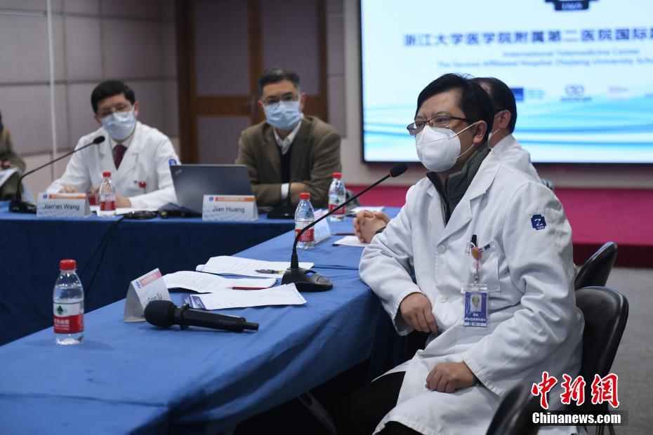 3月13日,浙大二院传染性疾病科副主任徐峰在介绍新冠肺炎治疗经验。当日,浙江大学医学院附属第二医院、武汉协和肿瘤中心ICU医生与爱尔兰科克市等地医生视频连线,向爱尔兰介绍中国抗击新冠肺炎疫情的措施和经验。并就预防社区传播、居家隔离政策、预防输入病例以及控制和切断传播途径、医疗资源统筹管理安排等方面进行分享。 中新社记者 王刚 摄