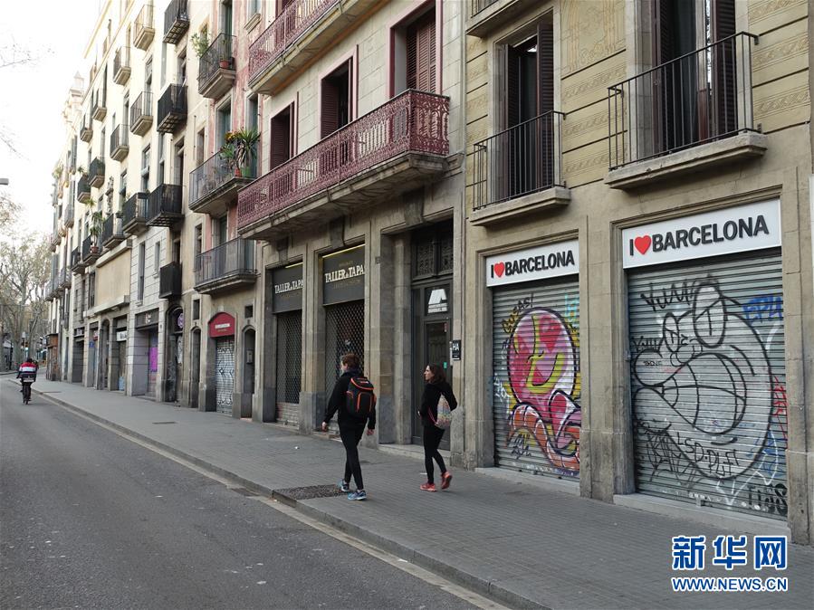 3月14日,西班牙巴塞罗那兰布拉大道旁边的商店关门停业。 西班牙首相桑切斯14日宣布,为遏制新冠肺炎疫情蔓延,西班牙即日起在全国范围内实施为期15天的“封城”措施。除工作、就医或购买生活必需品等特定情况外,全国范围内的民众禁止走出家门。 新华社发(周喆 摄)