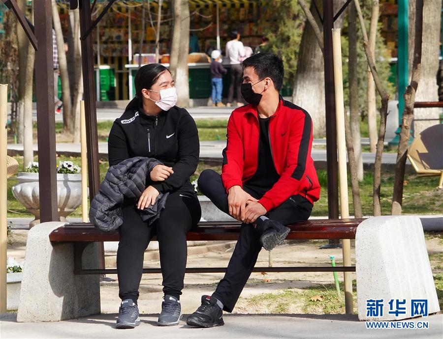 3月15日,在乌兹别克斯坦首都塔什干,市民佩戴口罩在公园休息。 乌兹别克斯坦卫生部门15日证实,该国确诊首例新冠肺炎病例。据乌卫生和流行病学署介绍,首名确诊患者为一名从法国返回的乌兹别克斯坦公民。 自3月14日起,乌兹别克斯坦暂时禁止部分疫情严重国家的公民入境。 新华社发(扎法尔 摄)