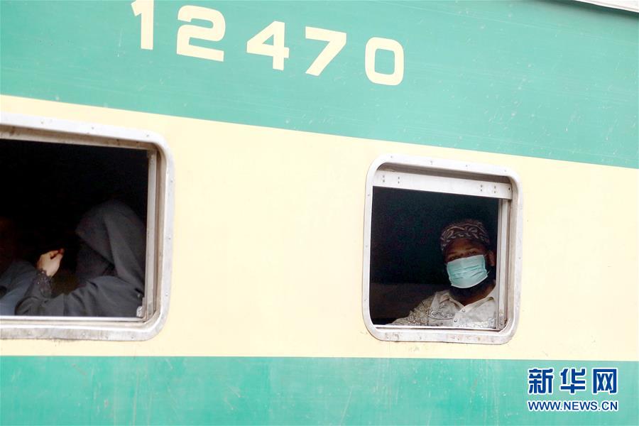 3月15日,在巴基斯坦南部城市卡拉奇,一名戴口罩的旅客坐在火车上。 巴基斯坦政府部门15日说,该国当天新增19例新冠肺炎确诊病例,累计确诊病例52例,其中2人治愈出院。 新华社发