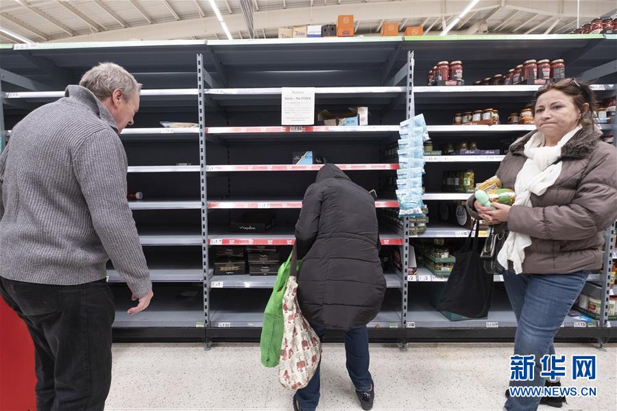 3月15日,在英国伦敦,顾客在一家超市内进行采购。 综合英国卫生当局14日发布的数字,英国新冠肺炎确诊病例数累计已达1140例。随着疫情升级,英国民众开始囤积生活必需品。 新华社发
