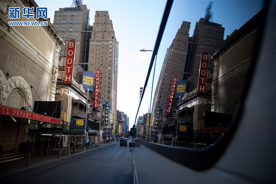 3月15日,在美国纽约,百老汇剧院集中的街道因演出取消几乎空无一人。新华社发(郭克摄)