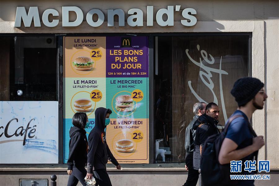 3月15日,在法国巴黎共和国广场附近,一家麦当劳餐厅暂停营业。 法国卫生部15日晚宣布,法国当天新增新冠肺炎确诊病例923例,累计确诊病例5423例。法国掌玺和司法部长贝卢贝当天宣布,除重大诉讼外,所有法庭都将关闭。内政部当天通知驾照考试“无限期推迟”。 新华社发(奥雷利安·莫里萨尔摄)
