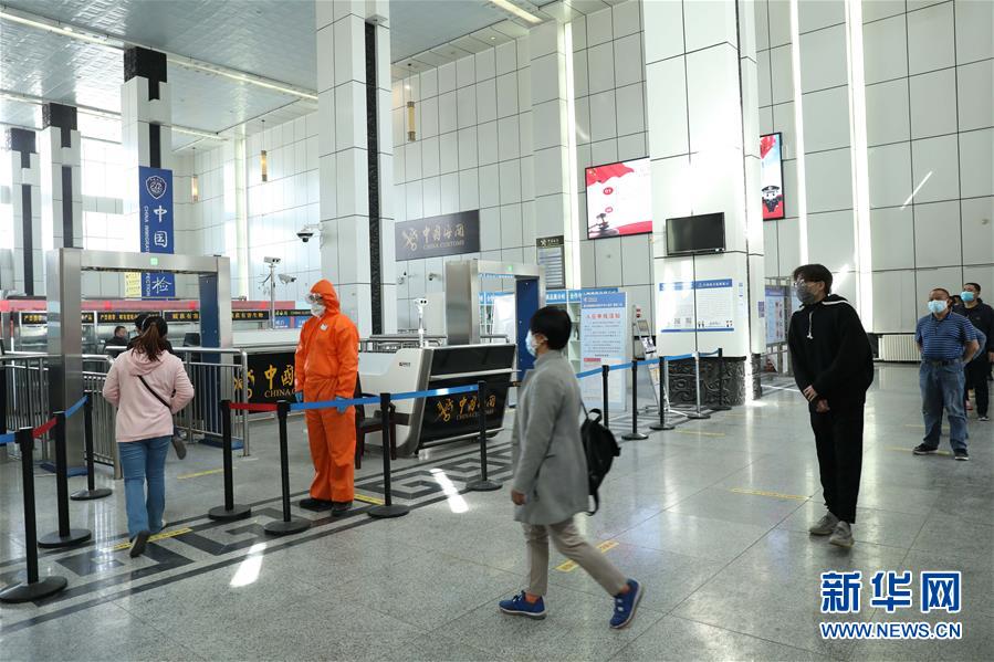 3月16日,出境的商户和游客有序通过海关检查。新华社发 (李明 摄)