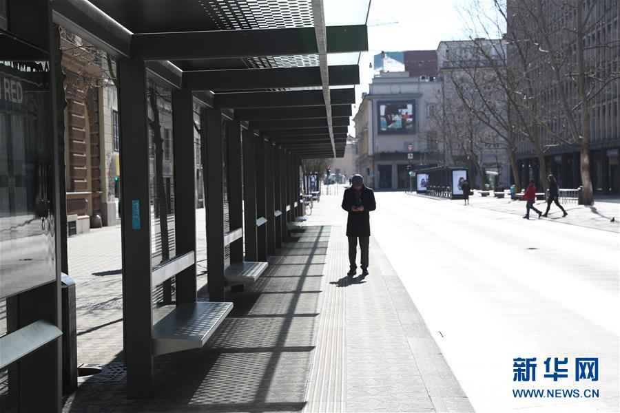 3月16日,在斯洛文尼亚首都卢布尔雅那,一名男子在停用的公交车站前看手机。 斯洛文尼亚政府16日宣布,截至当天14时,斯洛文尼亚新冠肺炎确诊病例升至253例,较前一日增加34例。斯洛文尼亚16日开始实行更多限制措施,包括关闭学校和大多数商店,暂停公共交通服务等,并宣布17日起暂停客运航班,以遏制疫情。 新华社记者 彭立军 摄