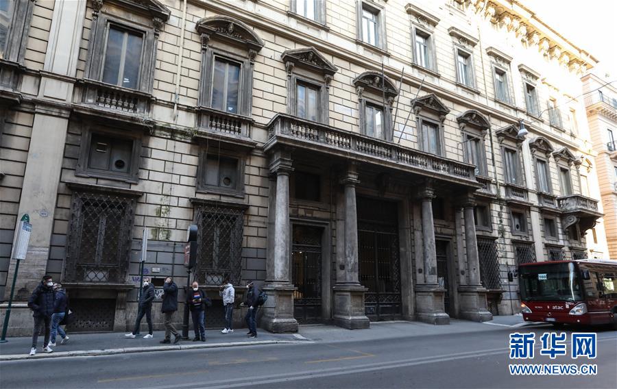 3月16日,在意大利首都罗马,人们戴着口罩等公交车。 新华社记者 程婷婷 摄