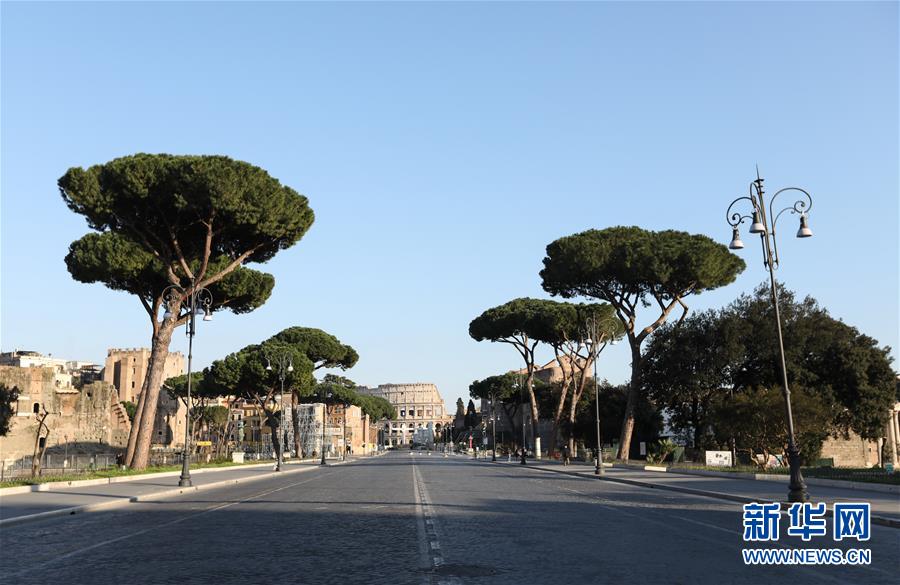 3月16日,在意大利首都罗马,帝国广场大道上行人寥寥。 新华社记者 程婷婷 摄