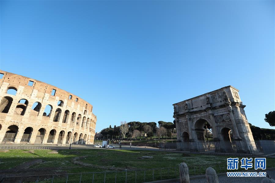 3月16日,在意大利首都罗马,斗兽场因疫情关闭。 新华社记者 程婷婷 摄