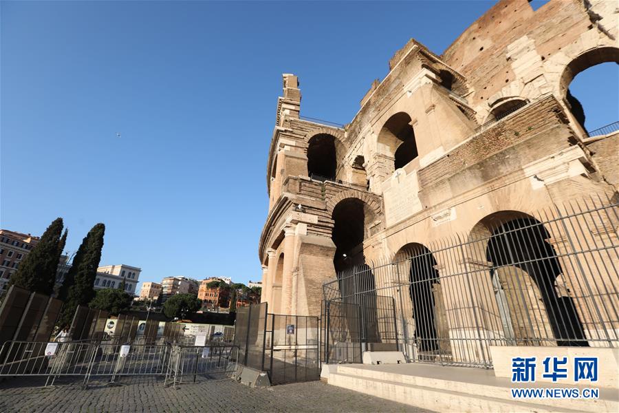3月16日,在意大利首都罗马,斗兽场因疫情关闭。 新华社记者 程婷婷 摄