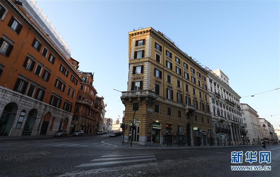 3月16日,在意大利首都罗马,晚高峰时段的道路空旷无车。 新华社记者 程婷婷 摄