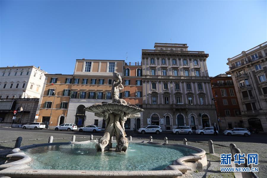3月16日,在意大利首都罗马,出租车在巴贝里尼广场一处出租车停靠点排队等候。 新华社记者 程婷婷 摄