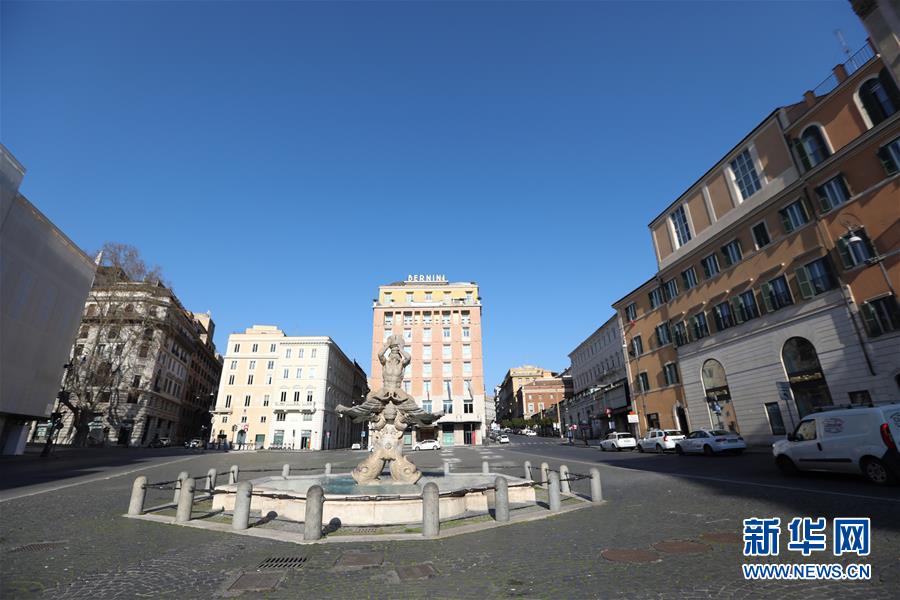 3月16日,在意大利首都罗马,巴贝里尼广场空旷无游人。 新华社记者 程婷婷 摄
