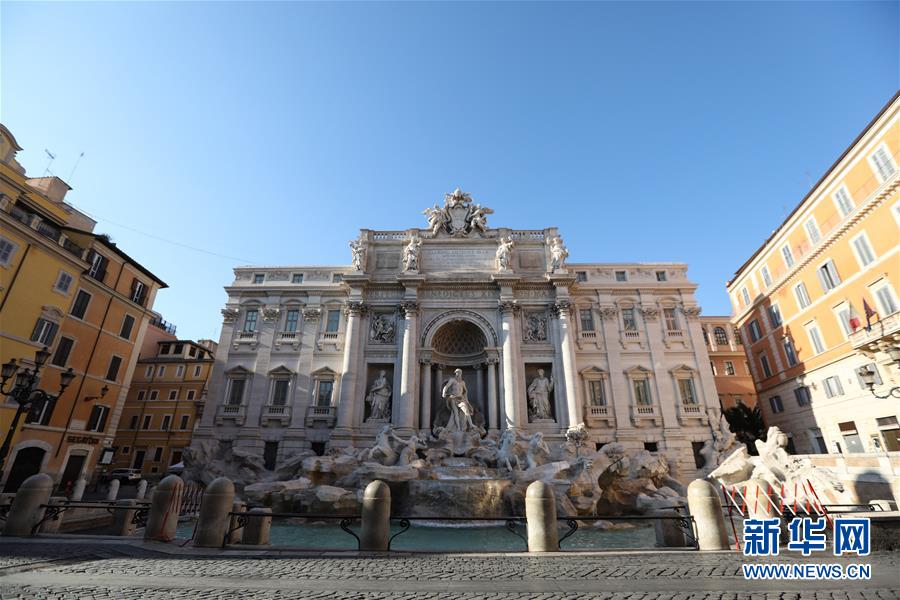 3月16日,在意大利首都罗马,因疫情关闭的许愿池前无游人。 新华社记者 程婷婷 摄